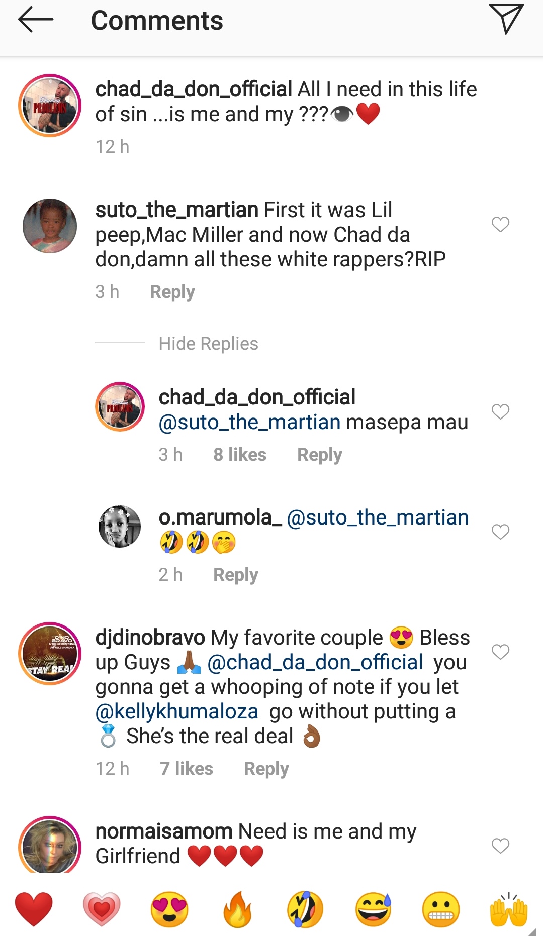 Chad Da Don shut down a hater on Instagram by swearing at them after their comment about Kelly Khumalo. See Below: