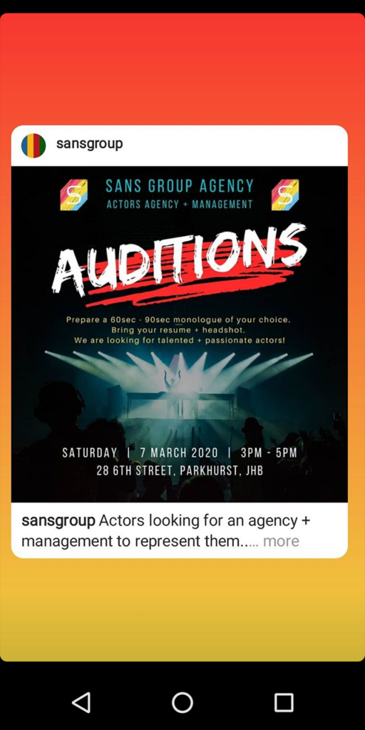 Auditioning Opportunity at Sans Group Agency For Wannabe Actors/Actresses