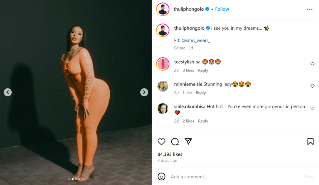 This is not the first time the 29-year-old actress and disc jockey has brought the internet to its knees. Not so long ago, Phongolo took to her Instagram page with some juicy snaps where fans jumped in the comments and questioned if she had gotten a BBL, obviously complimenting how good her body looks.