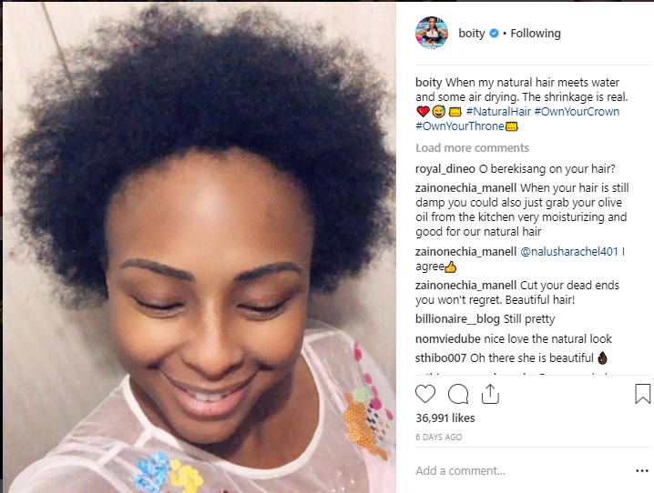 Boity Reveals The Product She Uses To Get Her Afro Popping