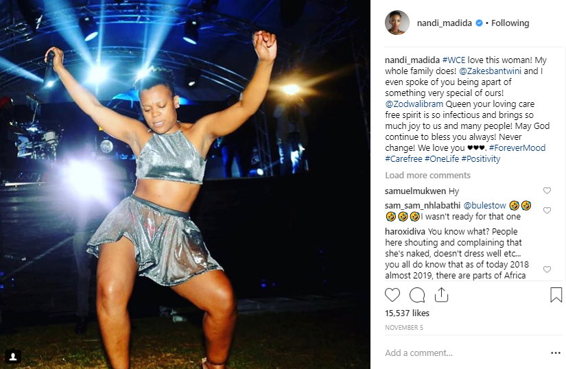 “@Zodwalibram Queen your loving care spirit is so infectious and brings so much joyto us and may people! May God continue to bless you aleays! Never change! We love you” – Mrs Madida added.