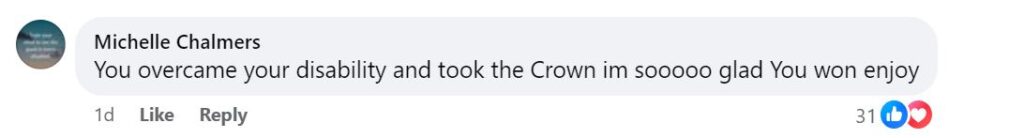 “You overcame your disability and took the Crown im sooooo glad You won enjoy #MissSA2024,” the user commented further.