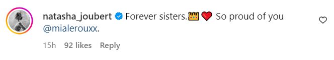Even former Miss South Africa winners joined in the celebration. Natasha Joubert, Miss South Africa [2023], tweeted, “Forever sisters.👑❤️ So proud of you @mialerouxx.”
