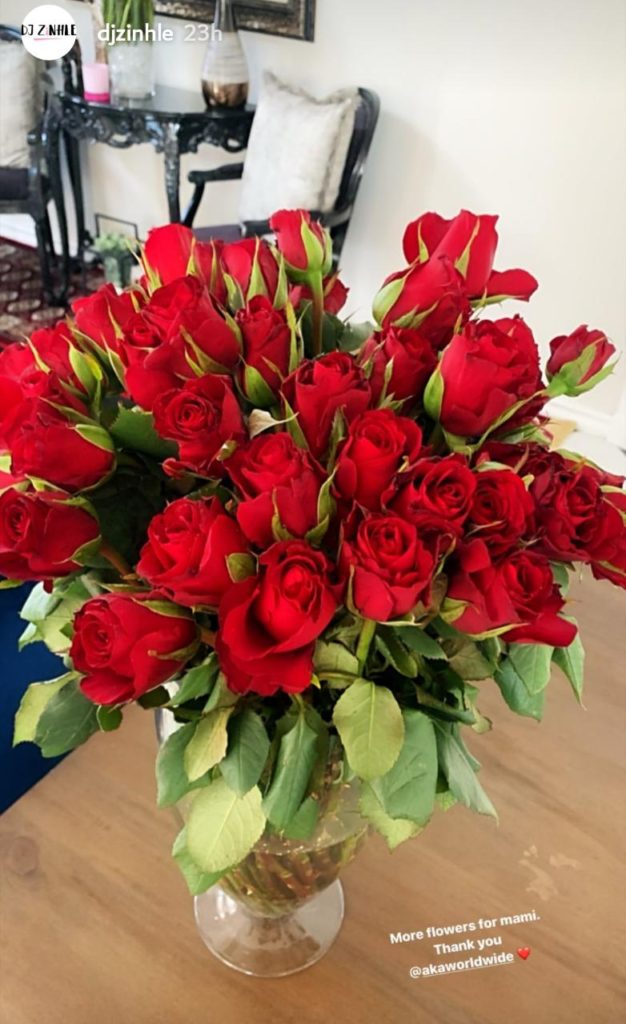 At times you just want to feel appreciated and loved. Well Dj Zinhle is living the life that most woman would die for. Yesterday she went on her Instagram status and gave a shout out to her man AKA who delivered some flowers and a gift in her hotel room. We must say that she is one lucky lady.