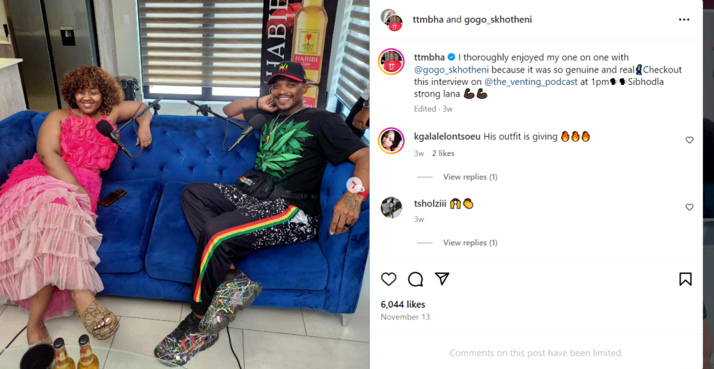 Gogo Skhotheni is currently pursuing a career as a DJ and also hosts her very own podcast called The Venting Podcast, where she interviews celebrities and creates a safe space for celebrities to open up about their lives.