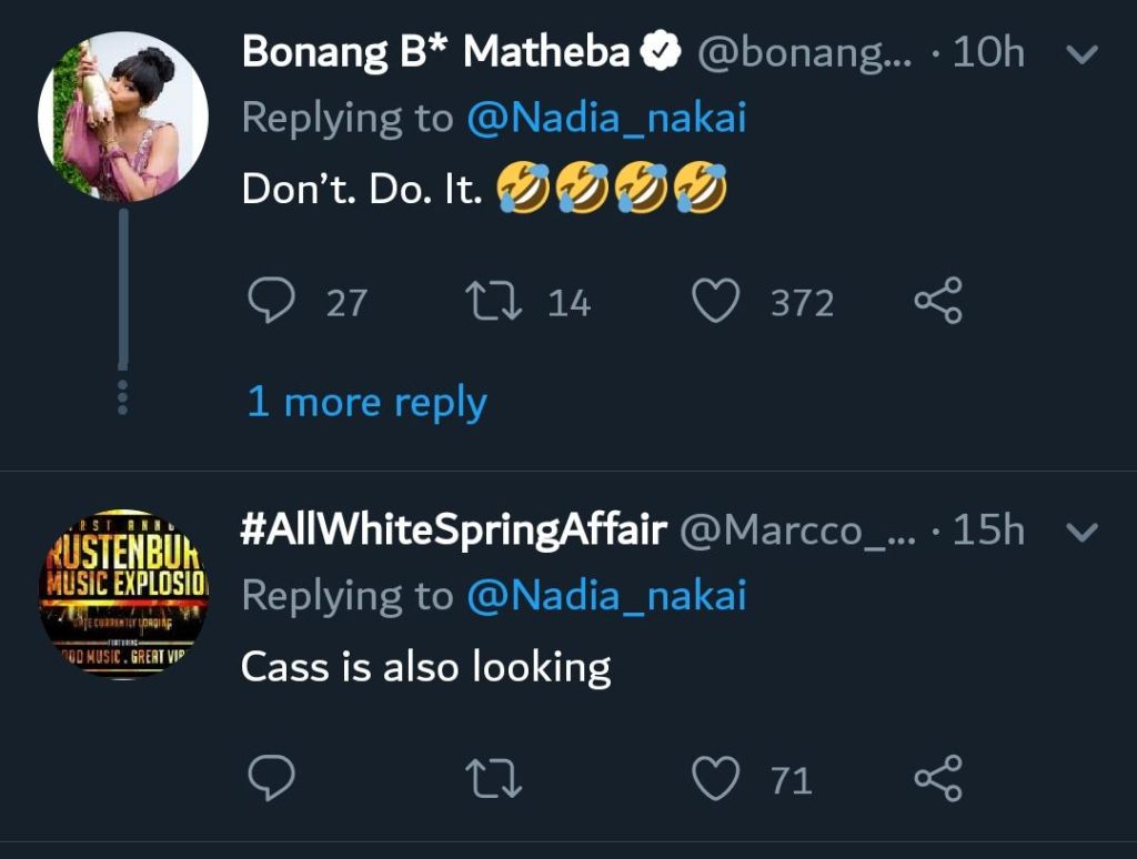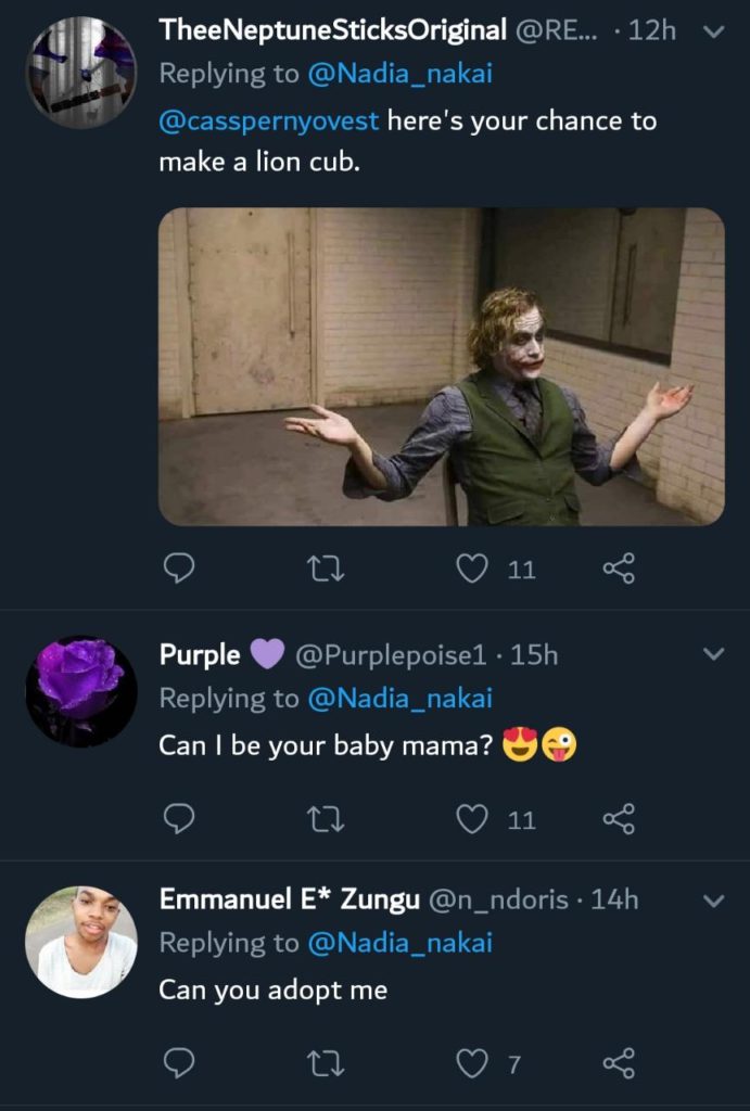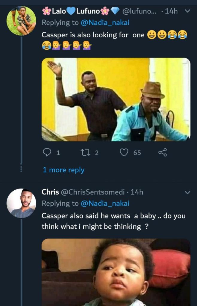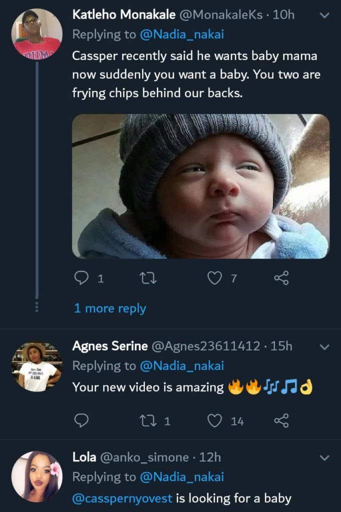 Yesterday she went on her Twitter and posted that she wanted a baby and boy did her fans go crazy. Rumor has it that she and Casper Nyovest have a little thing going. Here is what her Twitter fans had to say: