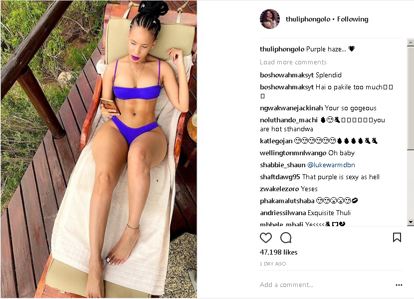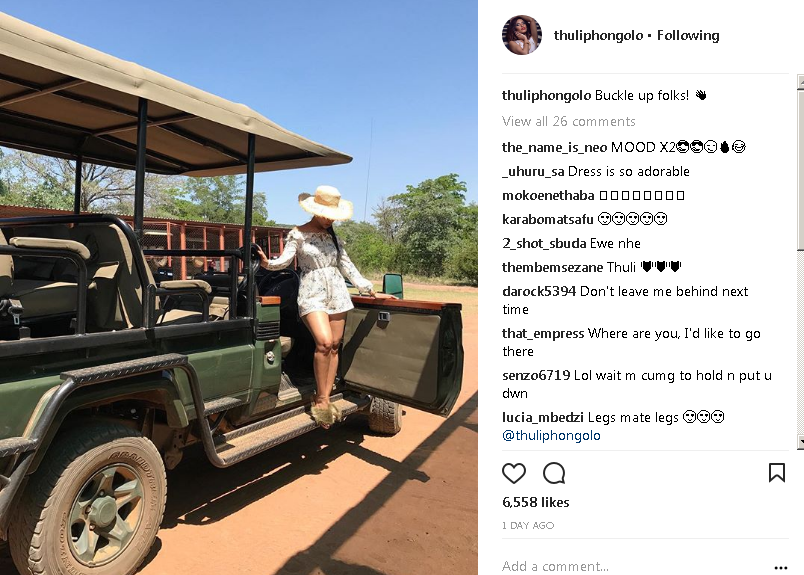 Thuli Phongolo’s Safari Holiday Pictures Will Make You Cry With Envy! Generations’actress Thuli Phongolo is enjoying a safari holiday and looking damn good while doing it. And of course she took to Instagram to share a snap of her holiday.