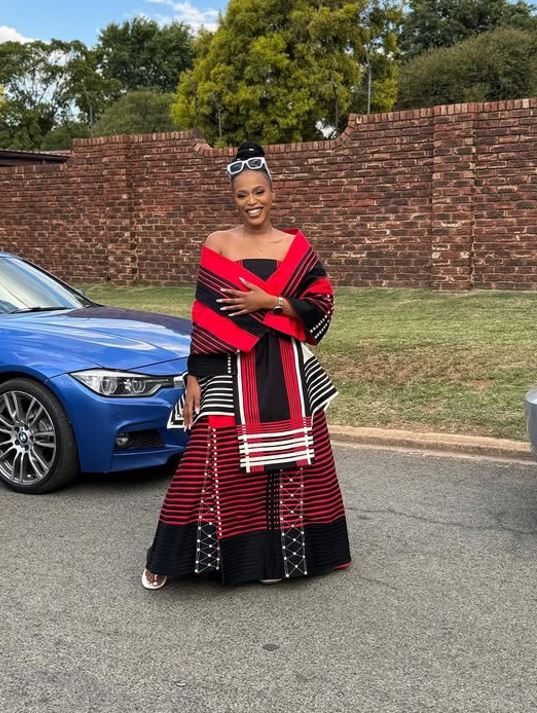 Natasha’s Xhosa attire was a masterpiece of intricate design and cultural symbolism. The outfit featured bold red and black tones, traditional beadwork, and elegant patterns that are signature elements of Xhosa fashion. The vibrant red symbolized vitality and passion, while the contrasting black exuded power and sophistication. Together, these colors created a harmonious balance, emphasizing the beauty of the ensemble.