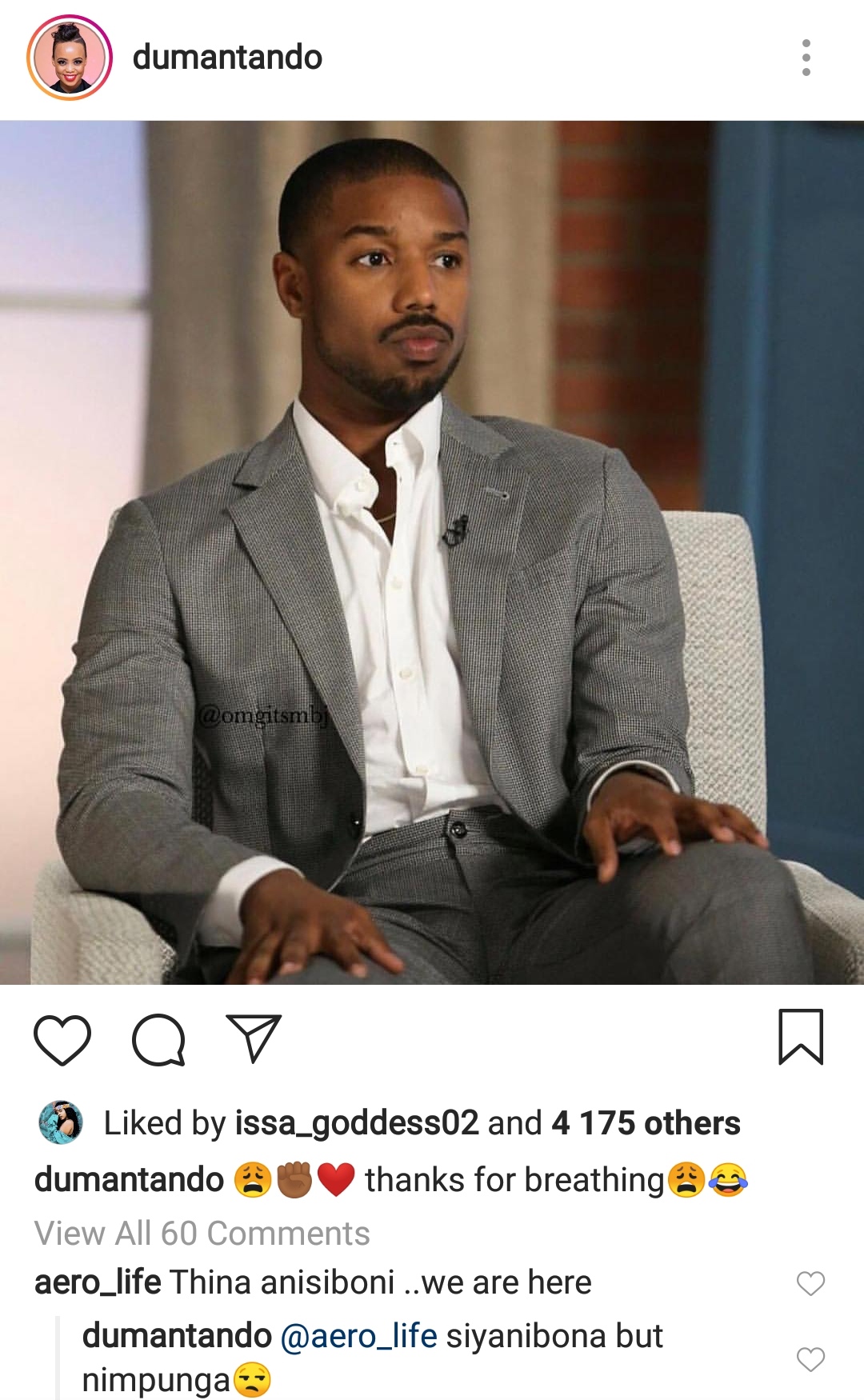 Duma, is head over heels for the popular actor, and we can’t say I blame her. He is just too ‘HOT’ for words. The 23-year-old mother of one took to Instagram recently to gush over Micheal B. Jordan.