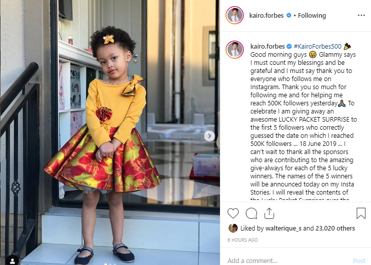 Talk about celebrity kids who are shutting it down just like their famous parents. Kairo is officially Mzansi’s most coolest celebrity kid. She’s only just a toddler but she’s managed to garner 500k followers on her Instagram?