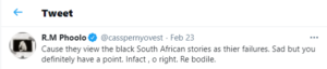 An empassioned Twitter user took it upon themselves to question Nyovest’s decision to express so much support to an international star when he has more than adequate support in the country he hails from. The unnamed tweep went on to point out that South Africans always rush to praise the international celebrities but never utter a word when one of our own accomplishes anything of significance.