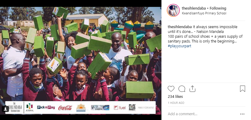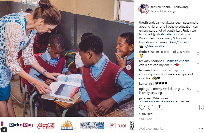 The 29-year old has recently established the Sihle Ndaba foundation which aims to help school children by providing them with basic necessities such as school shoes and sanitary pads. Since it’s launch, The Sihle Ndaba Foundation has made a huge change visiting a few schools in Mpumalanga.